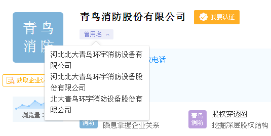 根據(jù)天眼查資料顯示,也已經(jīng)顯示“青鳥(niǎo)消防股份有限公司”作為公司名稱(chēng)。使用過(guò)如下曾用名: