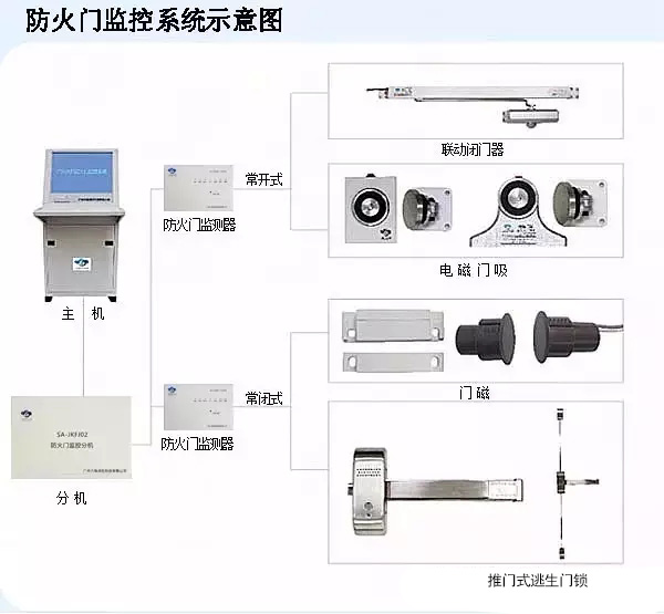 防火門監控系統是控制門的開和關,為了減少火災所造成的損失。一般組成是有防火門監控器主機,防火門監控器分機,防火門聯動閉門器,防火門電磁釋放器,和智能監控門磁等等組成,根據不同的需要,組成部分細微不同,有相應的質量檢測標準,簡稱“國標”。 防火門監控系統具備的功能應符合下列要求